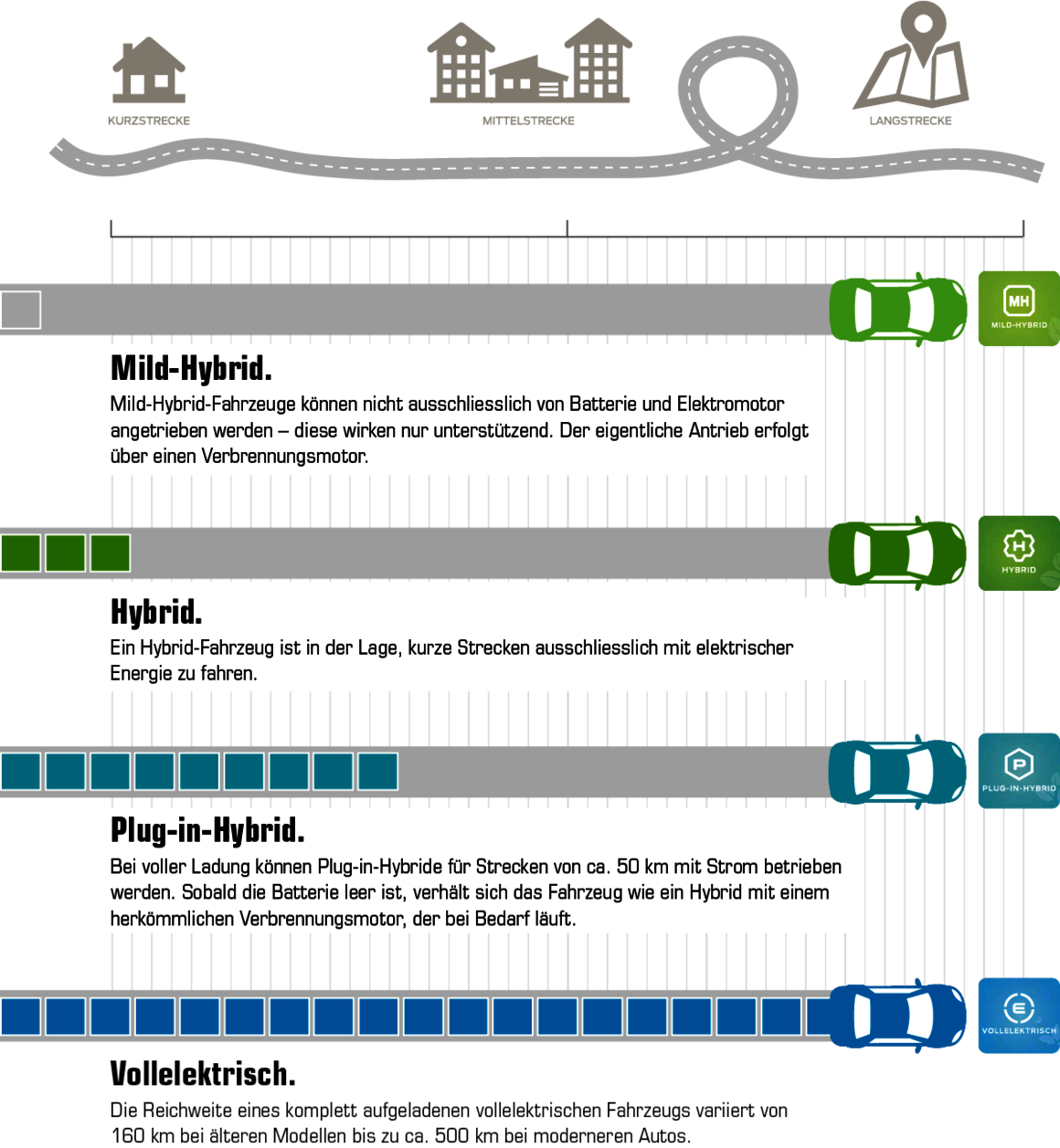 Wie ist die elektrische Reichweite der unterschiedlichen Systeme?